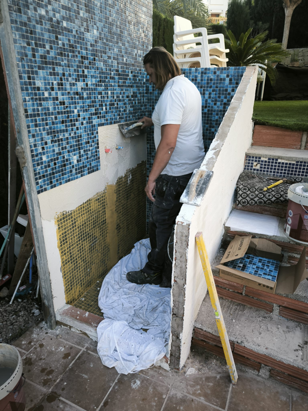 Albañilería y acabados: Tabiquería, falsos techos, enfoscados, colocación de suelos y alicatados con precisión milimétrica.